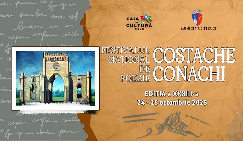 Casa de Cultură – Tecuci, în calitate de organizator, în colaborare cu Primăria Municipiului Tecuci și Editura „Junimea” – Iași, organizează în zilele de 24-25 octombrie 2025, ediția a XXXIII-a a Festivalului Național de Poezie „Costache Conachi”. Festivalul va cuprinde un concurs de poezie, desfășurat pe două secțiuni: Secțiunea I – Concurs Debut Poezie, Junimea Iași. Această secțiune a concursului îşi propune să stimuleze creația literară a tuturor creatorilor de poezie care nu au debutat în volum ( care nu […]