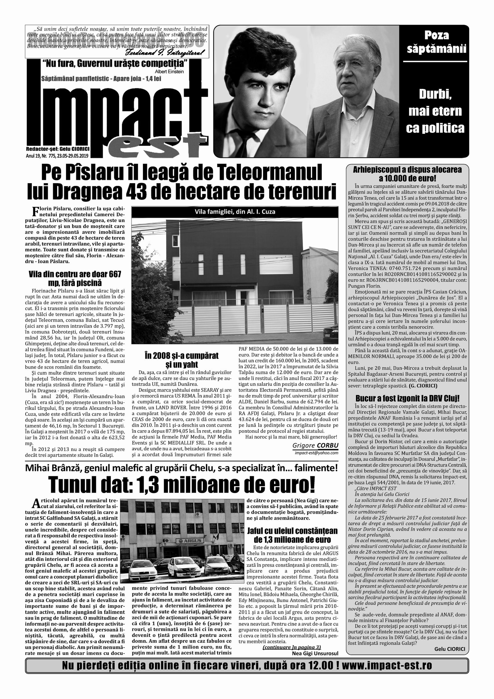 Articolul apărut în numărul trecut al ziarului, cel referitor la situaţia de faliment-insolvenţă în care a intrat SC Galfinband SA Galaţi, a stârnit o serie de comentarii şi dezvăluiri, unele incredibile, despre cel considerat a fi responsabil de respectiva insolvenţă a acestei firme, în speţă, directorul general al societăţii, domnul Brânză Mihai. Părerea multora, atât din interiorul cât şi din exteriorul grupării Chelu, ar fi aceea că acesta a fost geniul malefic al acestei grupări, omul care a conceput planuri […]