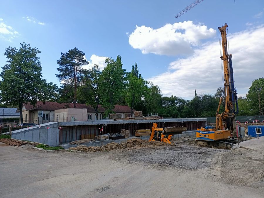 Constructorul a terminat fundaţiile, a montat macaraua şi a adus armătura gata fasonată