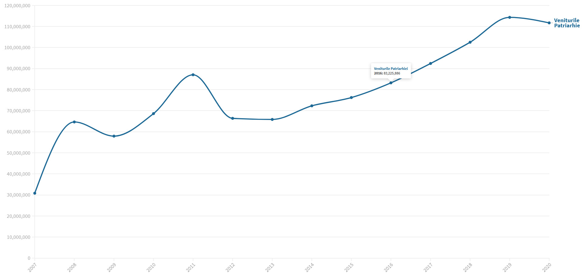 Rezultatele sale sunt impresionante: în 2007, când a venit la conducere, Patriarhia Română avea venituri de 30 milioane de lei pe an, iar în 2020, la ultimele date financiare disponibile, ajunsese la încasări de 112 milioane.