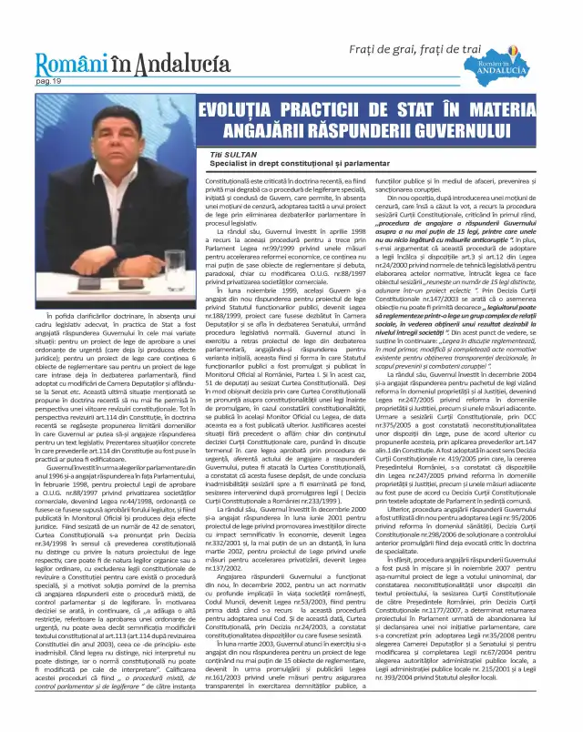 – Titi SULTAN – EVOLUȚIA PRACTICII DE STAT ÎN MATERIA ANGAJĂRII RĂSPUNDERII GUVERNULUI