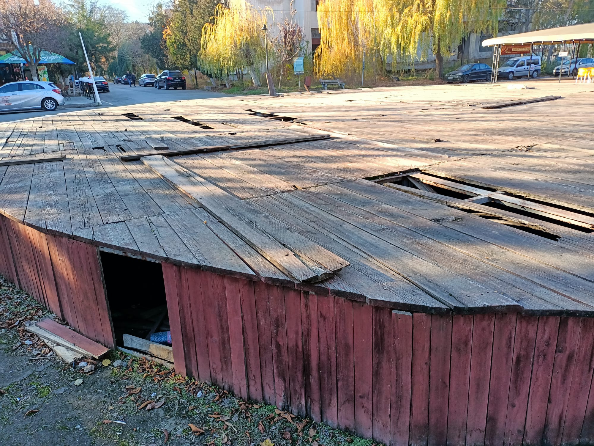 Aflu că la kilometrul zero al staţiunii, unde este sensul giratoriu, cândva era o fântână arteziană, necesară ca un gheizer ăn Sahara, căci verile sunt aici ca un pârjol, de ţi se pare că inspiri flăcări pe nas. Nişte alţi pesedişti, de data asta municipali, căci la un moment dat staţiunea aparţinea de municipiul Brăila, au ras arteziana şi au acoperit marele colector al apei cu o vastă scenă din dulapi de lemn. Că cică când este zilele muncipiului Brăila, să fie amploare politică de mititei, fum, bere, manele ca dansuri populare, adică un loc de pe care să se producă politrucii către populime. Numai că acum, prin zecile de dulapi mangliţi, săriţi din cuie şi de pe riglele-suport, patrund apele pluviale şi din zăpezi, este plin de peturi, sticle, cartoane, doze de suc şi de bere, ambalaje de celofan, încăt acolo fermentează o zoaie, adică un mediu natural pentru dezvoltare unei vaste infecţii urmată de molime, de ţânţârime care îţi ia felia din mână, dacă te apuci să mănânci la una dintre cele două terase care încadrează vaxul acesta de sens giratoriu.